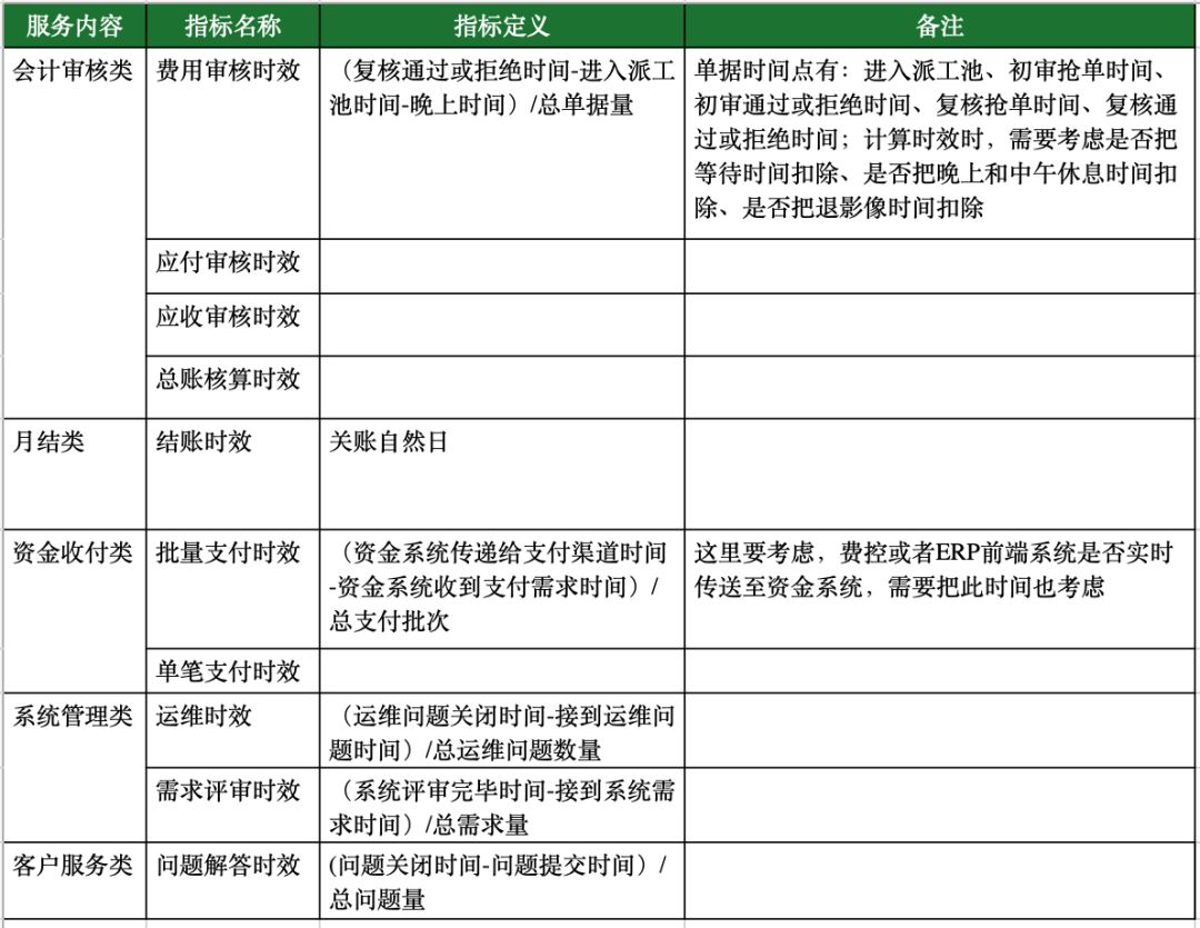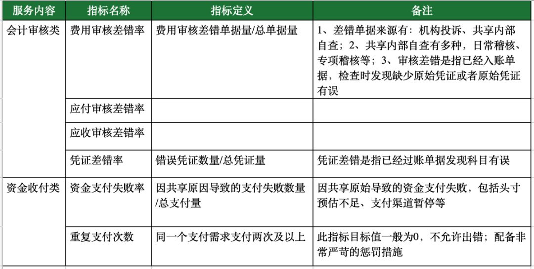 此部分仅列主要指标给予参考,具体执行中还需结合自己共享业务特点灵活调整。