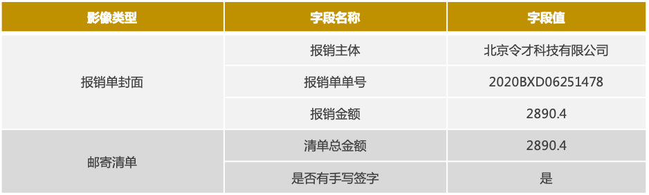 报销单封面和邮寄清单以微任务的形式发布到人工校对套件进行提取。部分提取信息见下表: