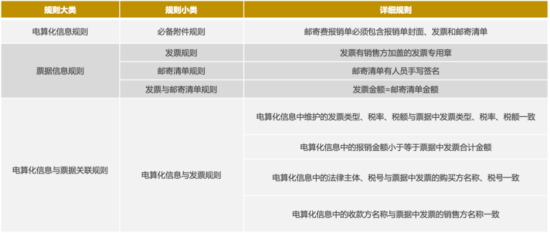 接下来仍以员工A提报的邮递费报销单为例,说明如何利用规则自动化对报销单进行智能审核: